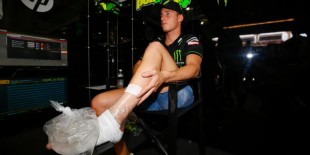 Pebalap Yamaha Tech3, Pol Espargaro, mengalami retak tulang metatarsal kedua pada kaki kiri akibat kecelakaan pada sesi latihan bebas ketiga GP Malaysia di Sirkuit Sepang, Sabtu (25/10/2014).