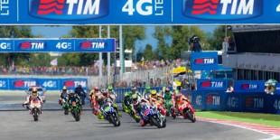 Para pebalap MotoGP melakukan start pada balapan GP San Marino di Sirkuit Misano, Minggu (14/9/2014).