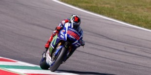 Pebalap Movistar Yamaha asal Spanyol, Jorge Lorenzo, memacu motornya pada sesi kualifikasi GP Italia di Sirkuit Mugello, Minggu (31/5/2015).