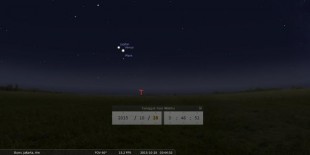 Ilustrasi konjungsi Venus, Mars, dan Jupiter pada Rabu (28/10/2015) dini hari.