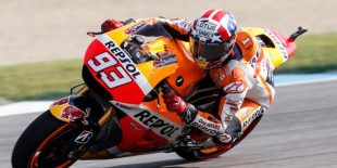 Pebalap Repsol Honda asal Spanyol, Marc Marquez, memacu motornya pada sesi kualifikasi kedua GP Indianapolis di Sirkuit IMS, Sabtu (8/8/2015).