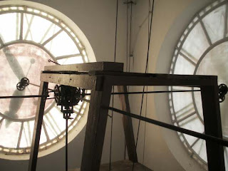 Bagian dalam menara terdiri dari beberapa tingkat. Tingkat paling atas adalah tempat penyimpanan lonceng. Mesin jam dan permukaan jam terletak pada satu tingkat di bawah. Menaiki tangga kecil ke atas cukup menguras tenaga. Tetapi perjuangan menaiki anak tangga itu tentunya terbayar.